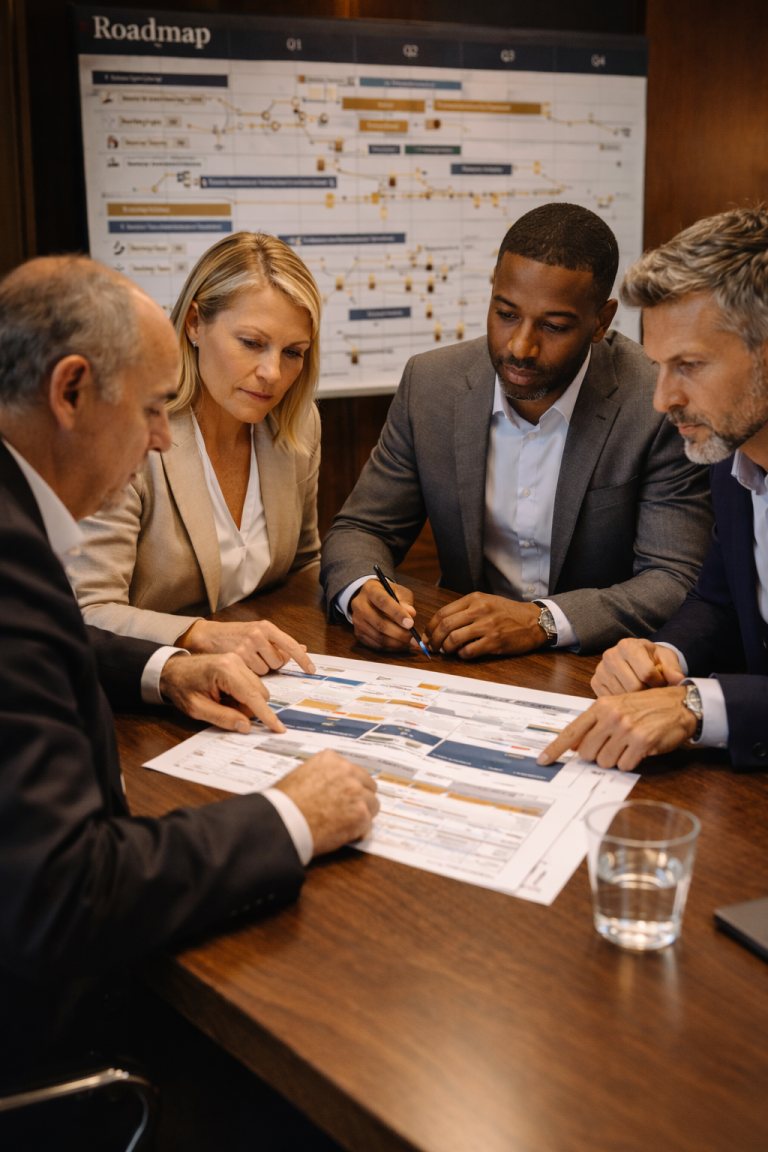 • Board-ready executive framework & sequencing roadmap (Weeks 7–8)